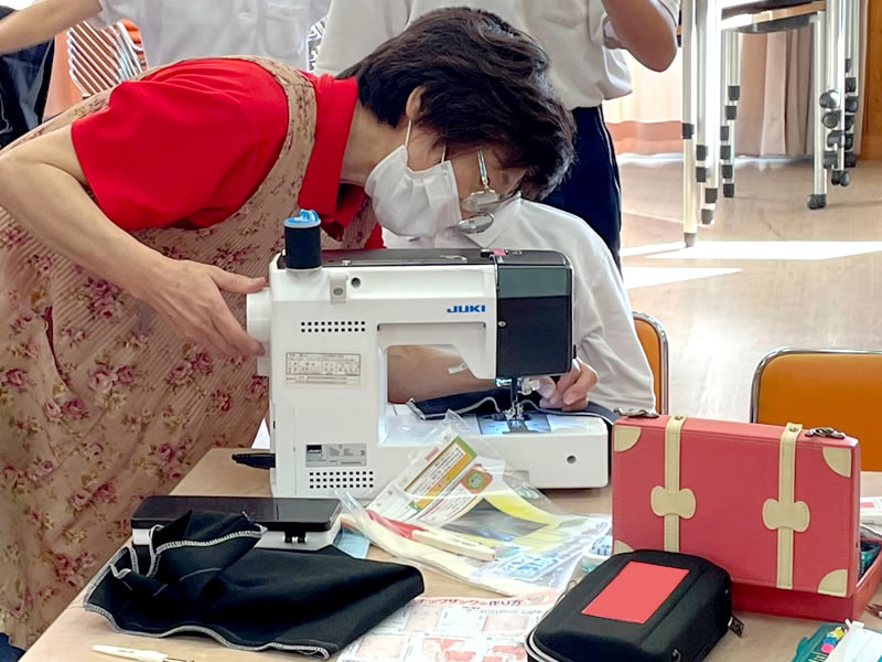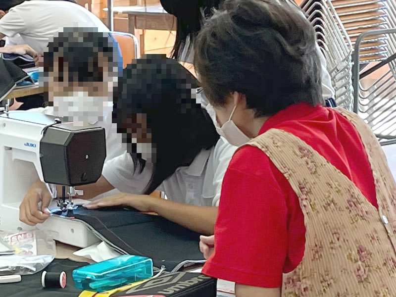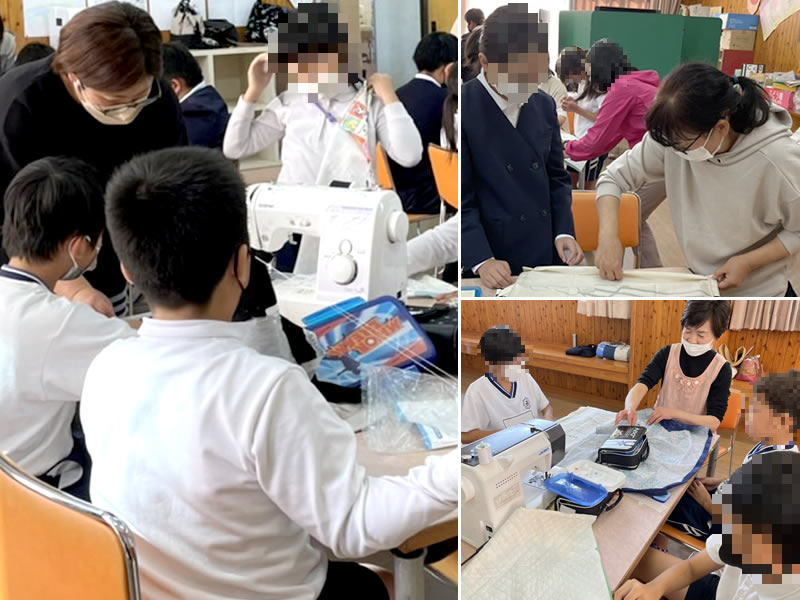 吾平小学校にナップザックやエプロン作りのため、ありまさん家より3日間2人ずつミシン補助としてボランティアに伺います。