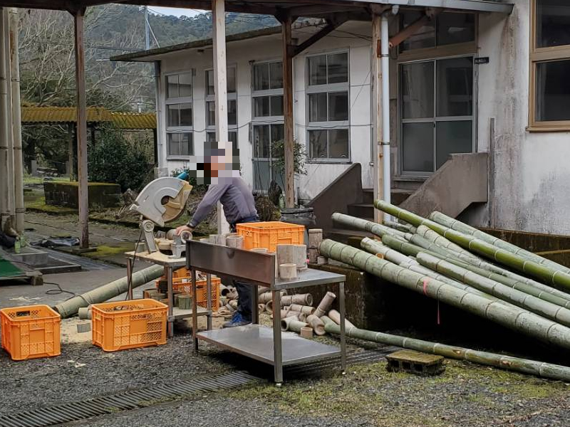 > 神野地区事業部 竹灯籠準備