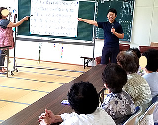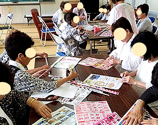 いつものように、朝の挨拶をして、健康チェックを行ったら、みんなで夏の歌を歌います。 そして認知症予防を兼ねた言葉遊びをして、体操をして、一息ついたら、お昼ご飯です。