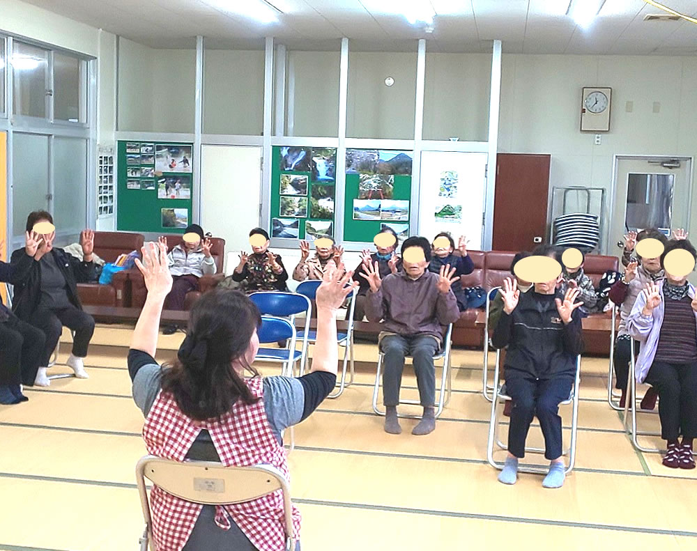 その後は、この一年を振り返った「言葉遊び」、手足体操や棒体操をして待ちかねたお昼ごはんです。